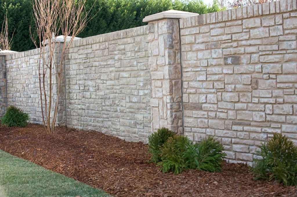 Whatever it is that needs walling-in, or walling-out, Carolina Wall-Crete offers the look of stone at the price of concrete. Decorative pre-cast concrete panels in 2', 4', 6' and 8' heights offer privacy and protection. Wall-Crete is ideal for dumpster enclosures, eye-catching entrances, and security fencing. In addition to solid concrete wall panels, posts can be set with vinyl, wood, aluminum, or wrought iron inserts. While both functional and versatile, the design is also aesthetically pleasing and can be stained to compliment any landscape, home, or commercial design.